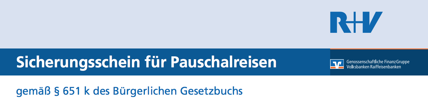 Ihr bucht bei uns völlig ohne Risiko, da wir eine Insolvenzversicherung bei der R+V Allgemeine Versicherung AG abgeschlossen haben. Mit der Buchungsbestätigung erhaltet Ihr einen Sicherungsschein als Garantie hierfür.